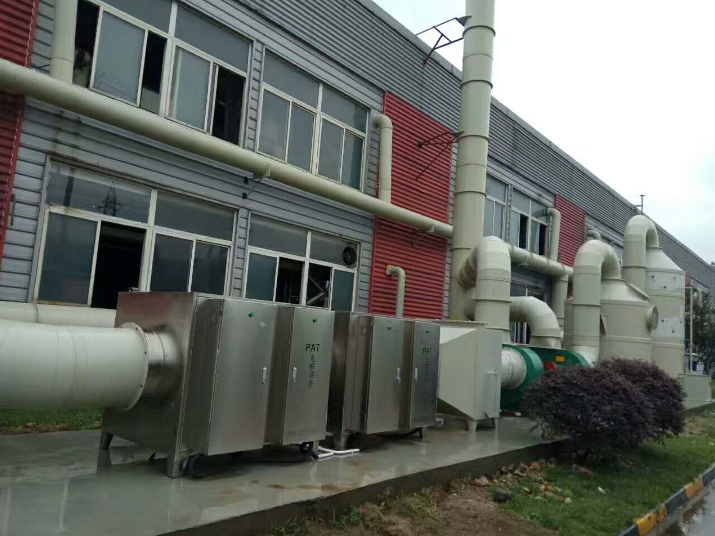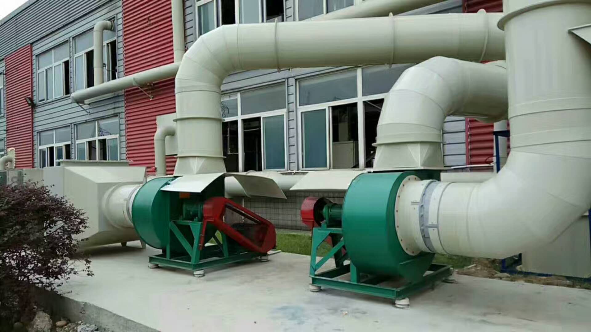 根据客户提供资料与公司技术人员交流得知:现有上下两层共18个废气排放口需要做废气治理,每个排放口的废气量为2000m3/h,所需治理的废气总量为:18×2000=36000 m3/h,考虑保险系数和风量损失,设计配备二套处理能力满足20000 m3/h的废气治理系统,两套废气治理系统净化后排气口合并到一根15米高烟囱达标排放。
